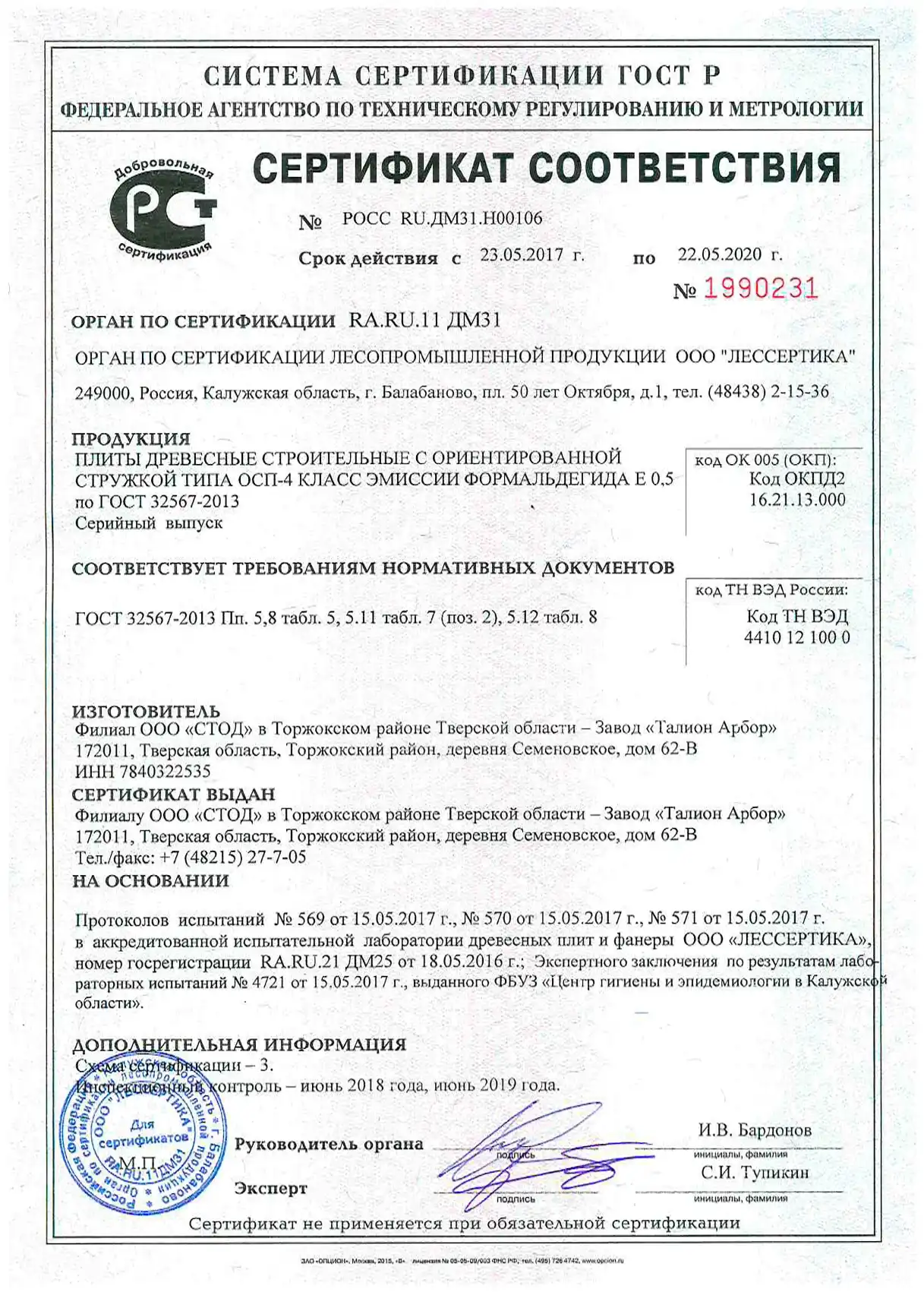 Плита OSB-3 (ОСП) Муром 20х1250х2500 мм