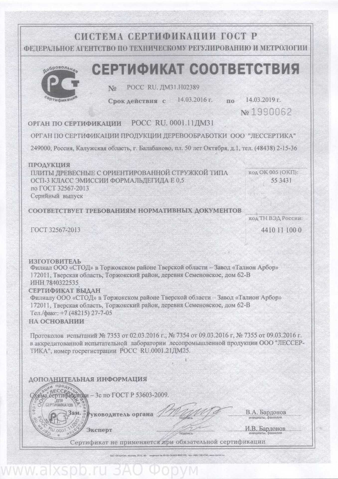 Плита OSB-3 (ОСП) Талион (Ультралам) 11х1250х2500 мм